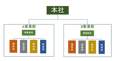 製品別であれ、顧客別であれ、場所別であれ、自己充足的に部門化された組織は、事業部制と呼ばれることが多い。各事業部は自己充足性が高く、図3のように、各事業部自体が自己完結した機能別組織になっている。日本企業として最初に事業部制を導入したのは、1933年、松下電器、今のパナソニックだと言われている。メーカーの場合、各事業部は製品別になるのが一般的で、特定の製品群について購買、製造から販売までを担当し、利益を計算できる組織単位、つまりプロフィット・センターになる。