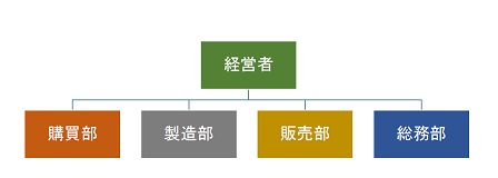 ファヨール(Fayol, 1917)は職能を強く意識していたが、実際、今日では、ほとんどの会社は、図1のように、職能別に部門化されている。もっとも、細分化の程度に依存して、ファヨールの考えていた職能とはかなり違って見えることが多いが、このように職能別に部門化された組織は職能別組織と呼ばれる。こうした職能別組織は会社に限らず、大学の学生サークルなどでも、大きなサークルは執行部や事務局が職能別組織になっていることが多い。
