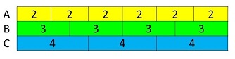 このことをペンローズは、より的確に表現している(Penrose, 1959, p. 71)。例えば、小さな会社では、化学の知識がある人も、化学の専門家としては1日ほんの2〜3時間、工程中の製品検査に化学の知識を使うだけで、残りの時間は、在庫のチェックや請求書の発行などに使われることになる。しかし、会社が大きくなれば、化学の専門家としての仕事が増えて、彼はそれに専念することができるようになる。化学の知識を必要としない在庫のチェックや請求書の発行などは別の人員を採用すればよいのである。彼はけっして遊休していたわけではないが、同じ資源でも異なる状況下では異なって使用されうる。このように、専門化されたサービスをできるだけフルに使用しようとする動機がある。本来、専門化は、企業の産出量が専門化を正当化するほど十分に大規模になった時に初めて起こりうるのである。実際、段取り活動の中で、「大学卒業までの教育」ほど時間とコストのかかっているものはないだろう。受けてきた教育を無駄にしないような仕事をフル・タイムで提供できるのは規模の大きな組織しかない。言い換えると、大企業ほど高学歴者を有効利用できるし、高学歴者が多い企業は大規模なほど経済的なのである。 さらに、資源は離散(discrete)量でのみ入手可能で、それ以上分割して入手できない、いわば最小取引単位がある。この資源の分割不可能性から、倍数の原理(principle of multiple)が問題となってくる。つまり、望ましい最低水準の生産量は各資源の最小取引単位から得られる生産量の最小公倍数に等しくなる。たとえば工程バランスの問題で考えれば、機械の種類が増えれば、バランスを達成しようとする試みのゴールは絶えず遠退いて行くことになる。すべての機械を最も効率的な操業水準で使うためには、非常に大規模な生産を計画することが必要となる (Penrose, 1959, pp. 68-71)。 例えば、いま、ある製品の製造にはA、B、Cの3種類の機械が必要であるとしよう。それぞれの機械1台で製造が可能となる当該製品の生産量が2、3、4であるとき、図4で示されるように、生産量がその最小公倍数12になるまでは、必ず遊休機械が存在することになる。