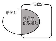 とは解法が異なる。割当問題ならば、力任せに、すべての可能な人々の順列を試して、その中で最大の総価値をもたらす順列を求める方法もあり、クーンの考えたハンガリー法(Kuhn, 1955)のように、コンピュータを使って効率的に数値解を求める計算アルゴリズムもある。 ところが、仕事分割問題では、こうは単純にはいかない。一般に、二つの活動集合 S1 と S2 の和集合 S1∪S2 の実行所要時間は、活動集合 S1, S2 それぞれ単独の実行所要時間の総和に等しくならない。すなわち非加法性: t(S1∪S2)≠t(S1)+t(S2) があるからである。この非加法性のせいで、効率的分割探しは複雑になる。では、なぜ非加法性があるのか。実は、たいていの活動は、始めるときにさまざまな「段取り」(setup)を必要とする。