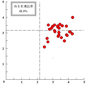 | ぬるま湯比率 | 92% | 86% | 81% | 75% | 67% | 59% | 52% | 43% | 45% | 34% | 11% | 67% |